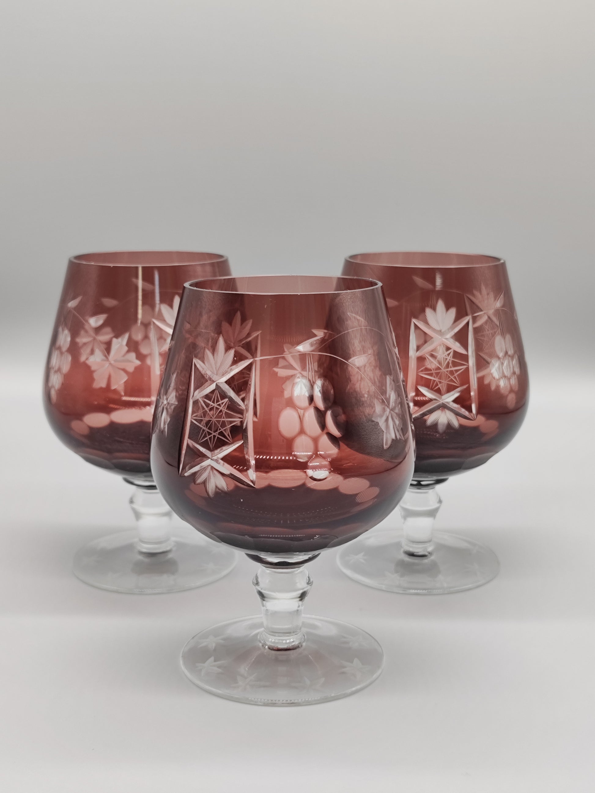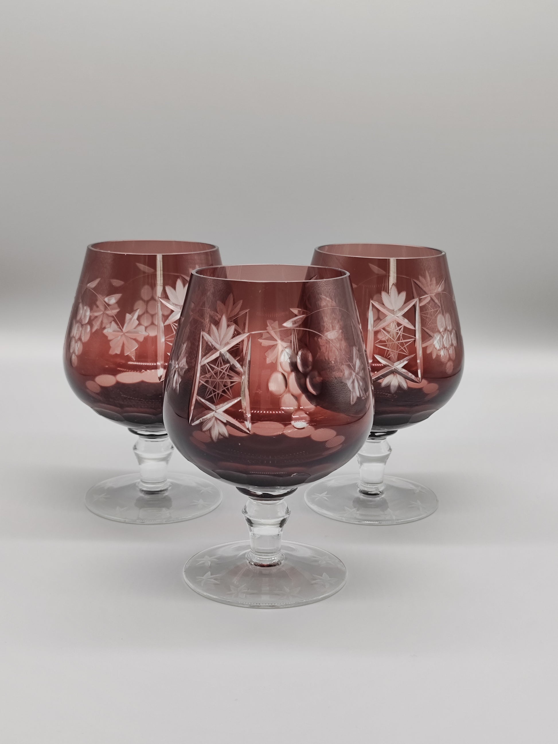 zwei große Cognac-Gläser mit Überfang und geschnittenem Traubenmuster – Brandy-Ballonschwenker