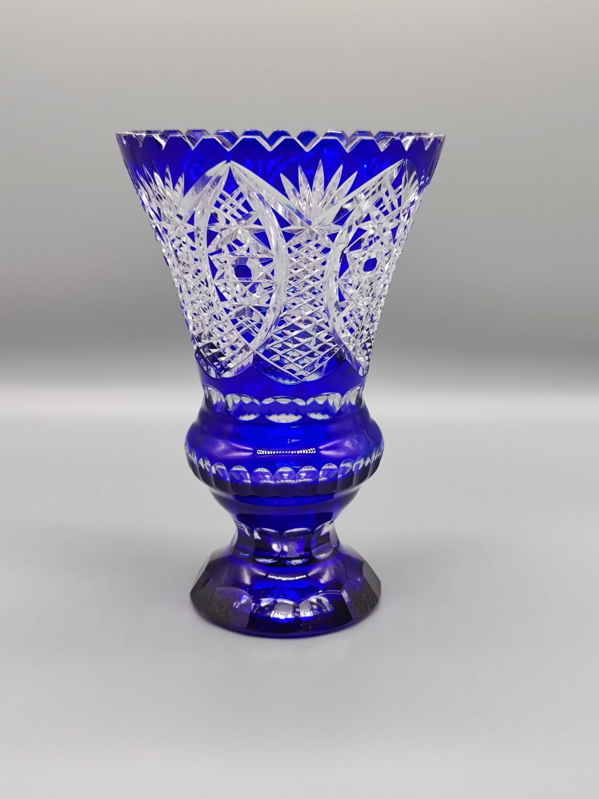 Vintage-Vase aus Bleikristall mit blauem Innenfutter