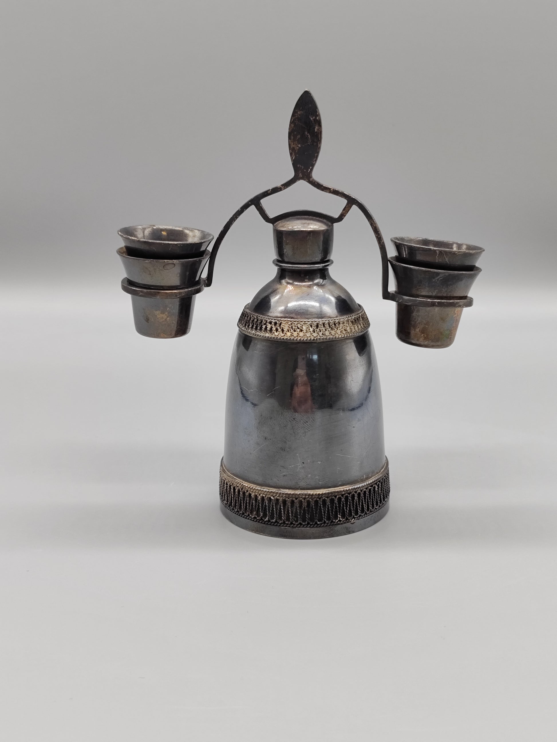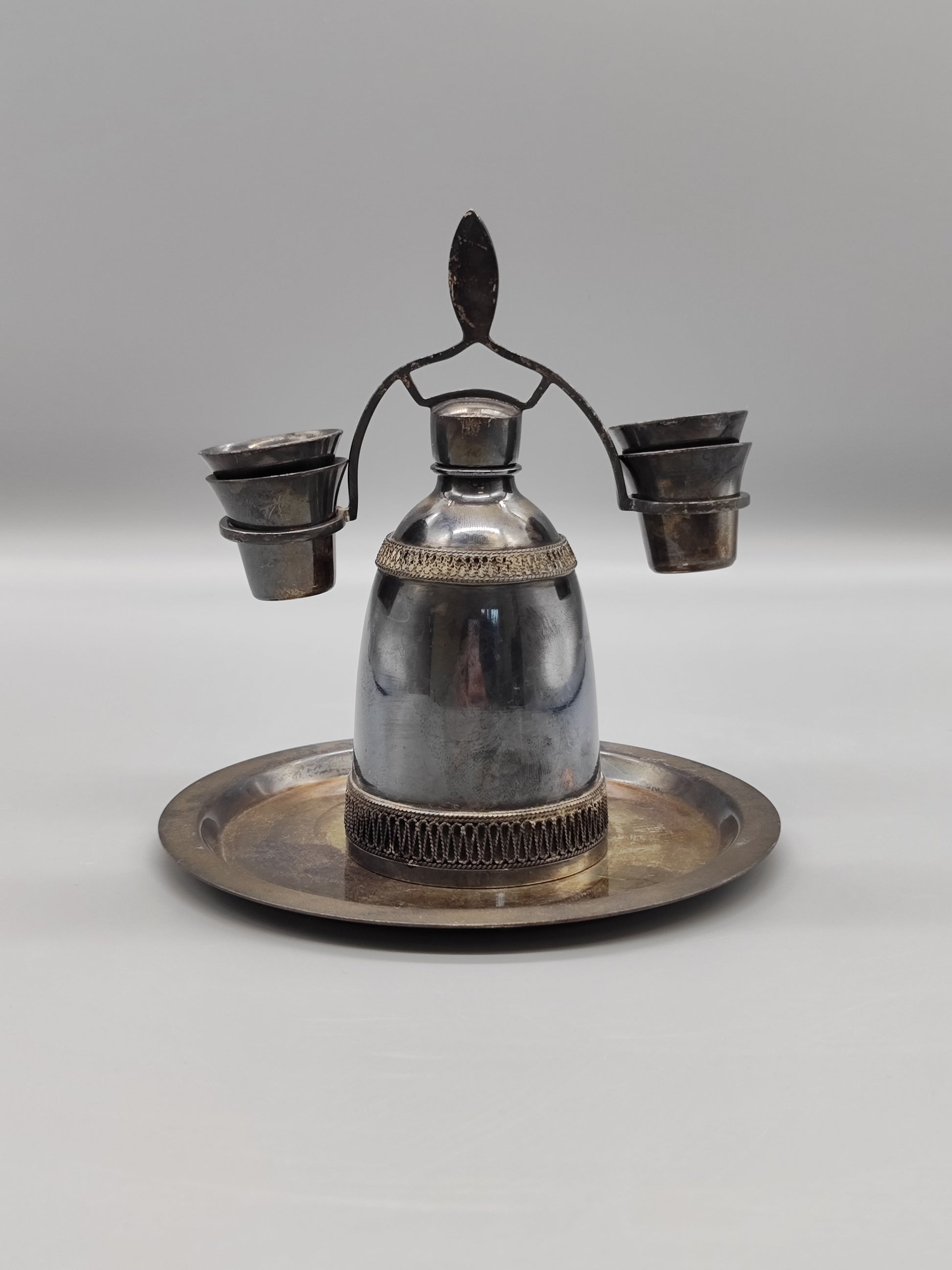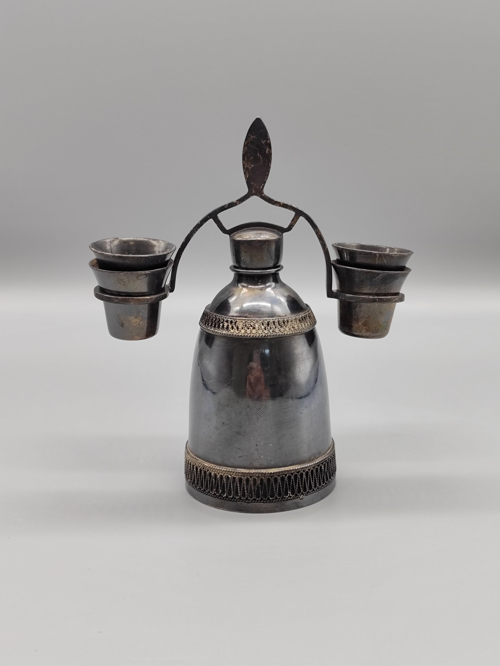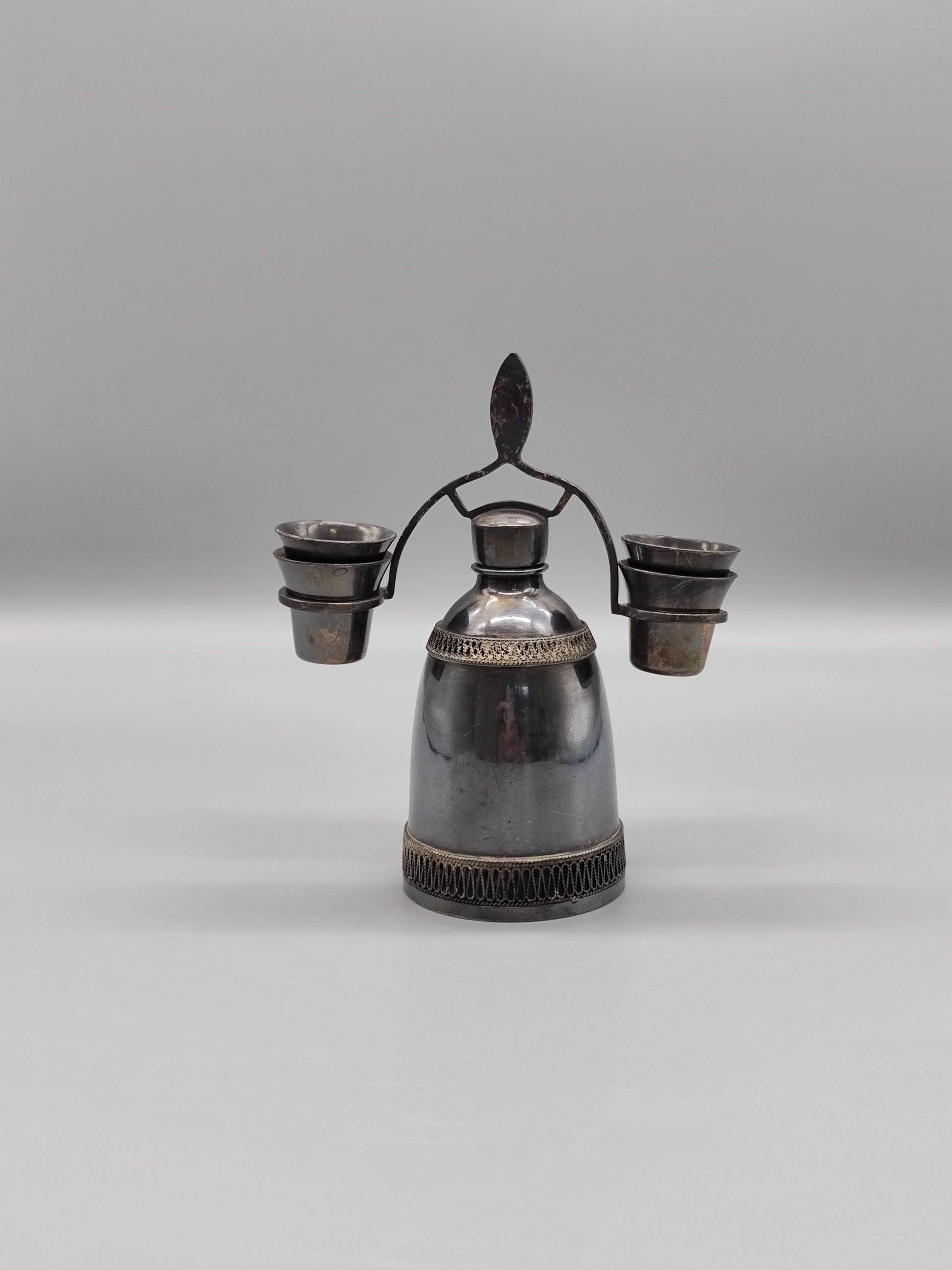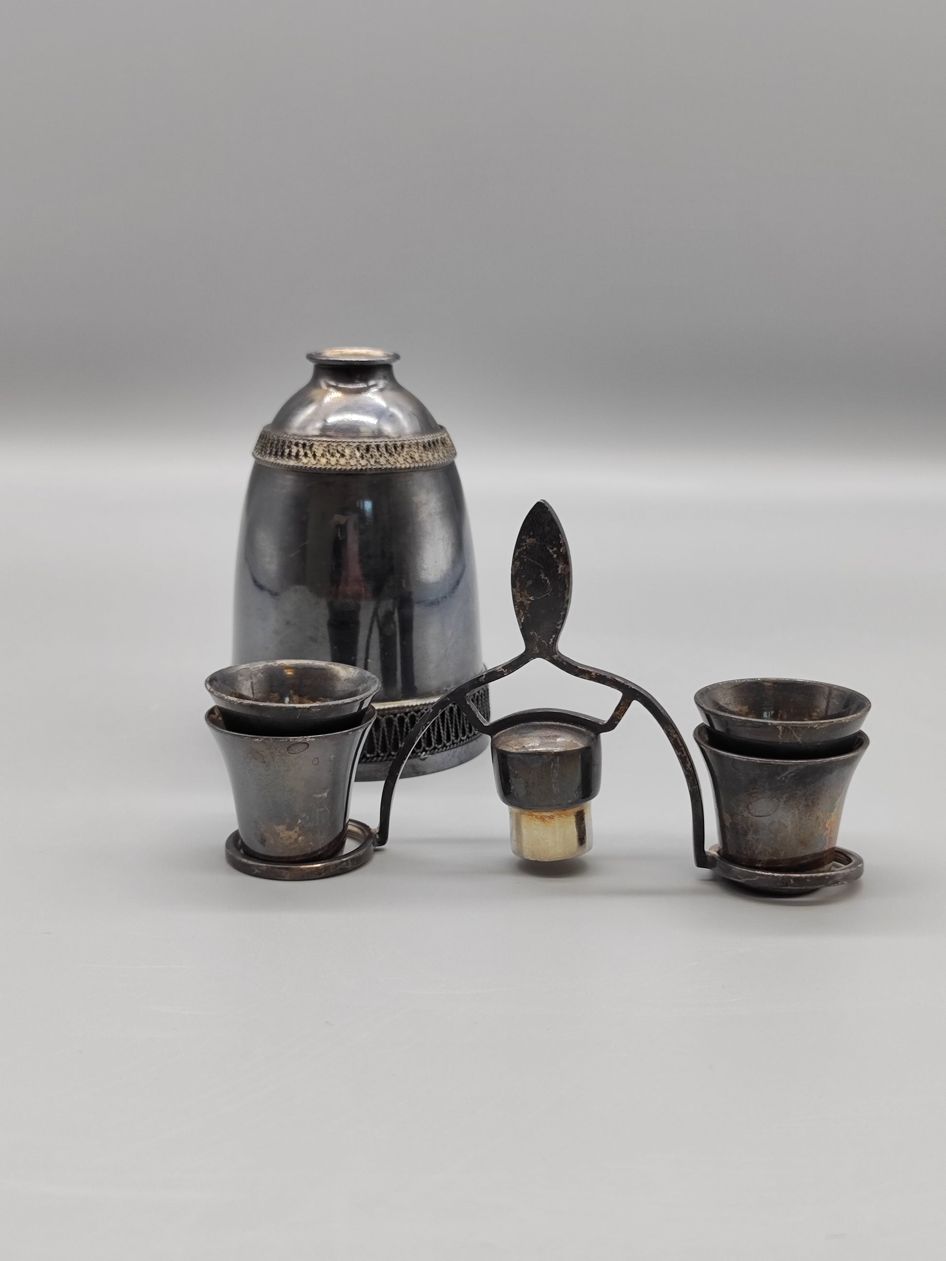 Vintage-Set aus Neusilber für Likör-Vintage-Damast-Dekanter der UdSSR