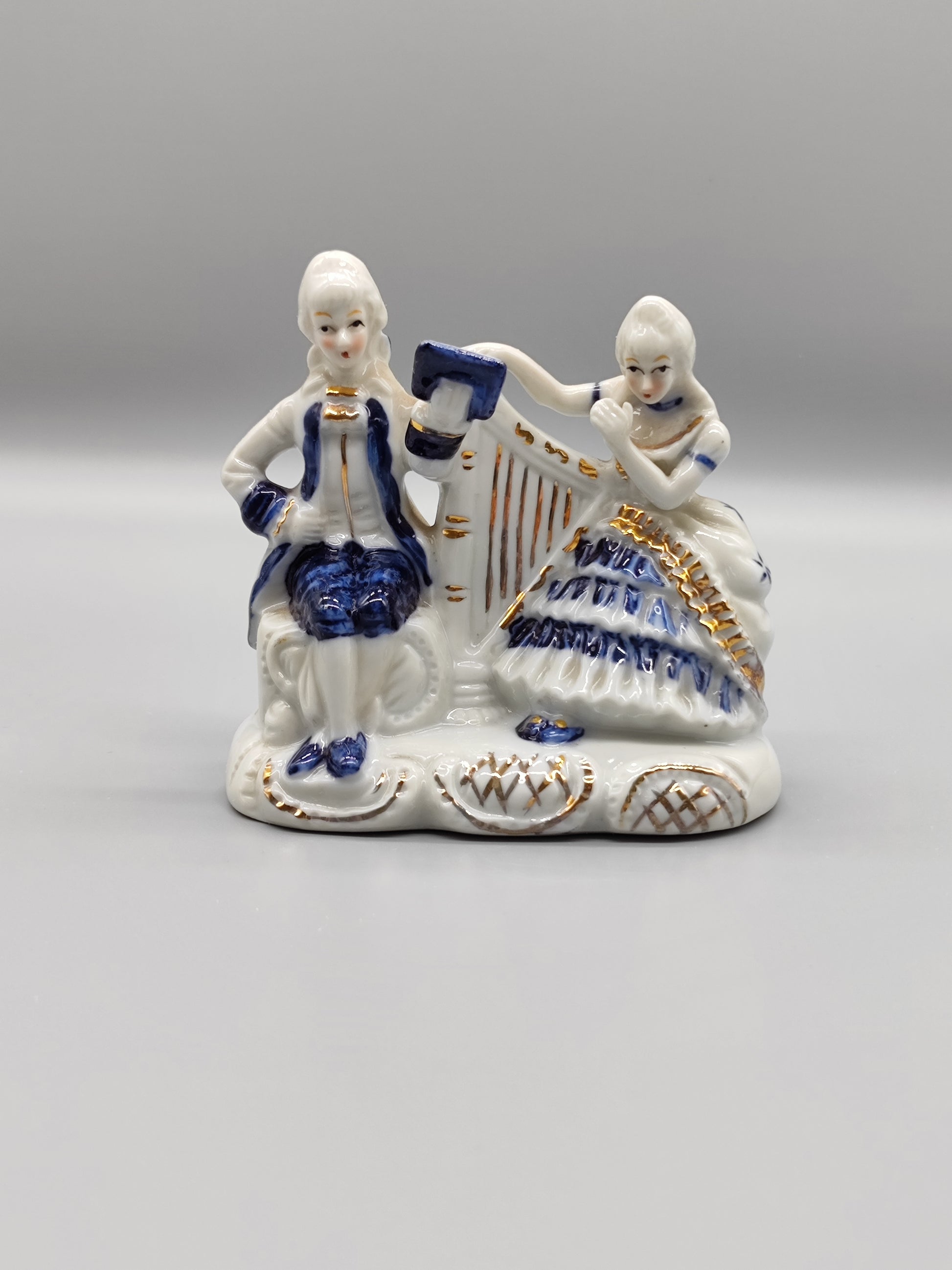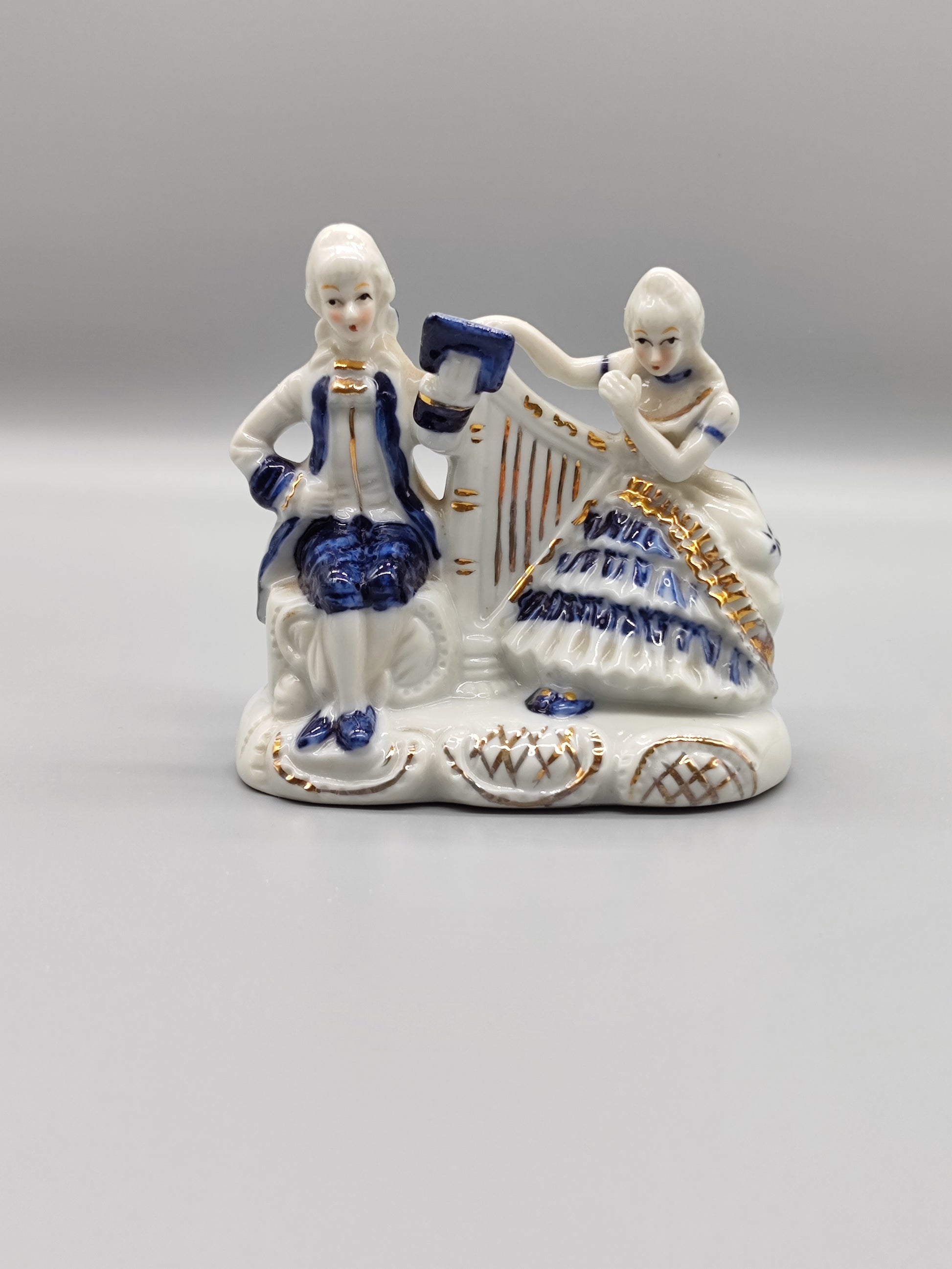 Porzellanfigur Rokoko Stil Dame mit Harfe Herr mit Notenblatt