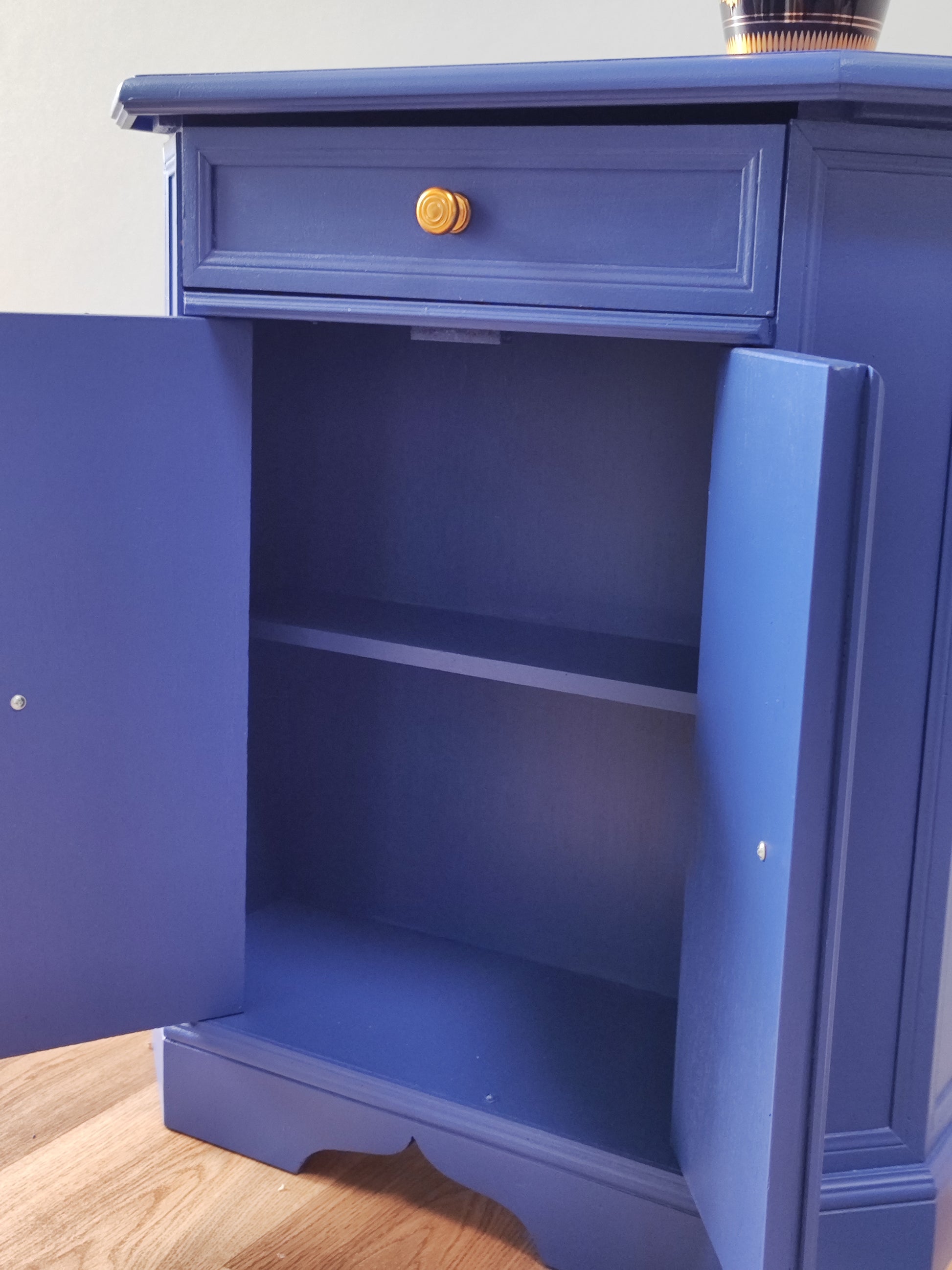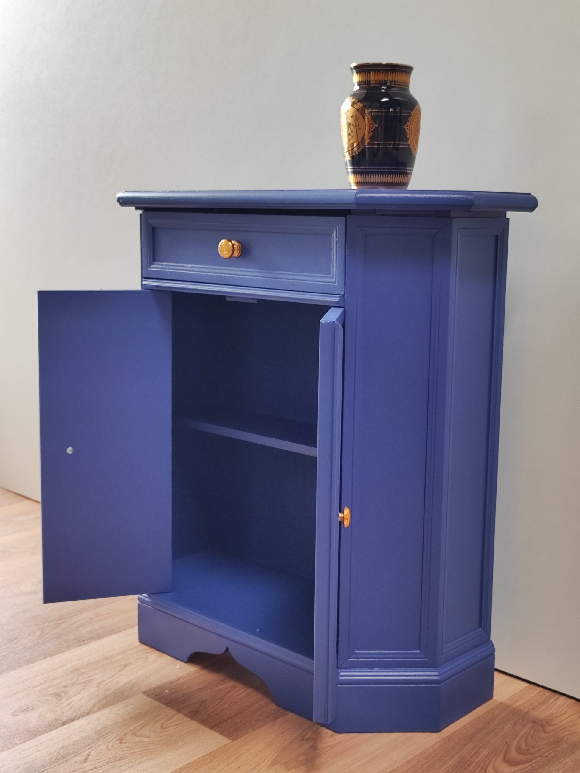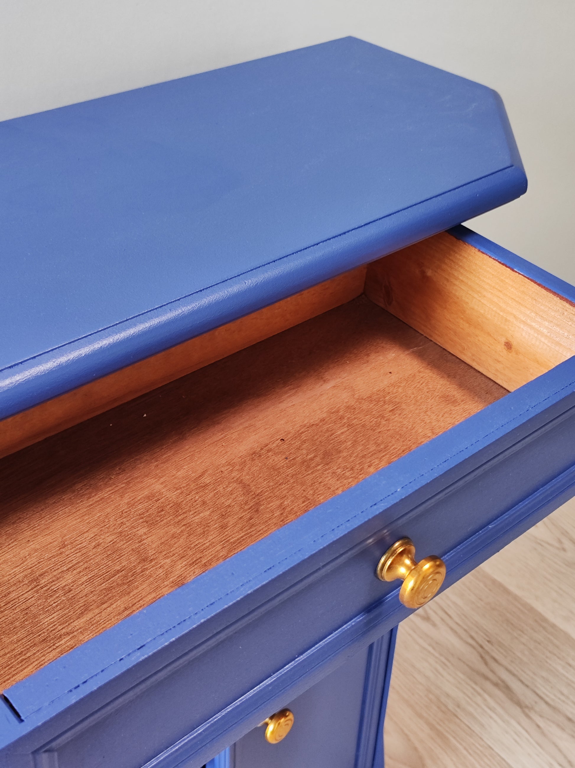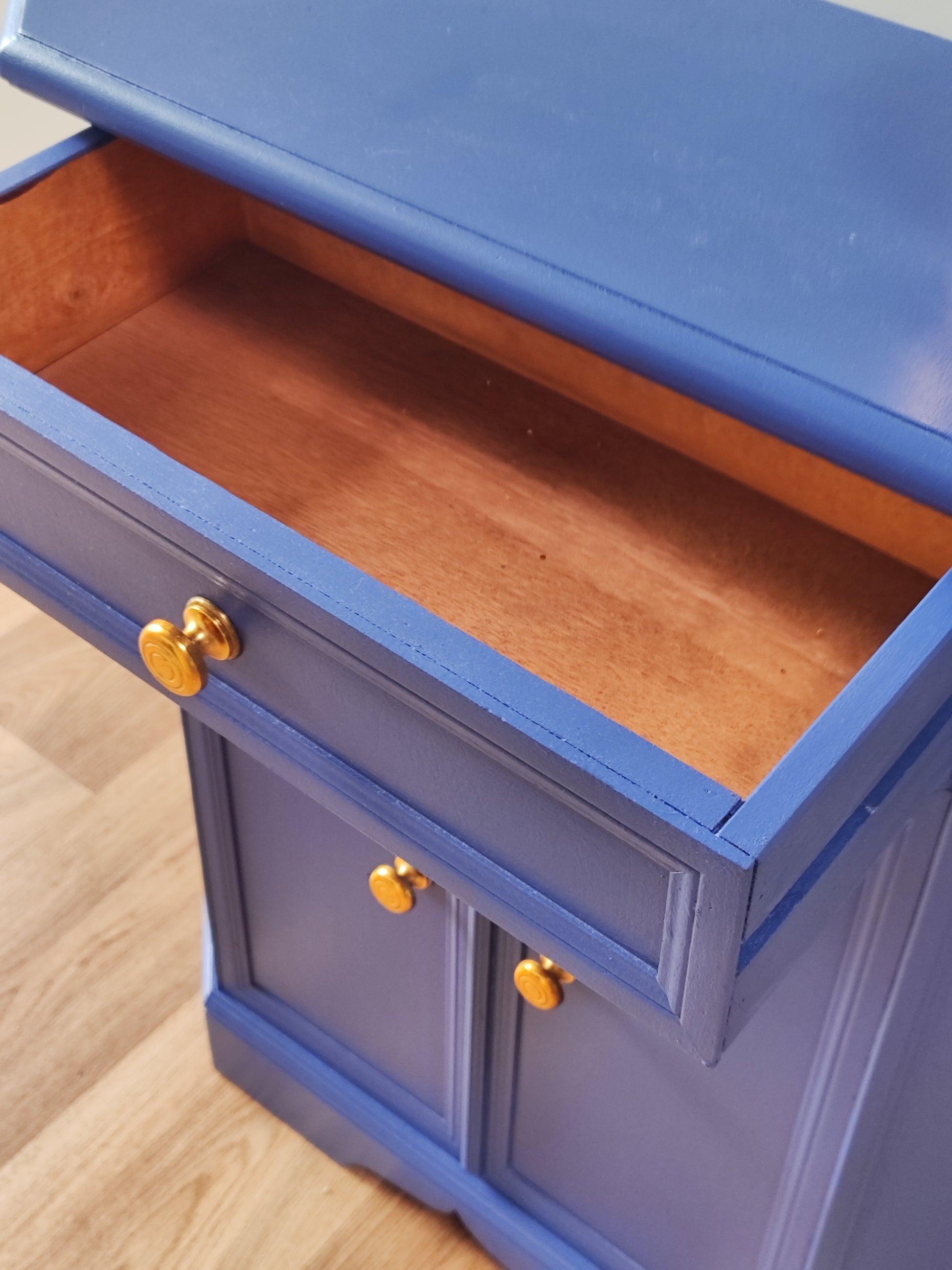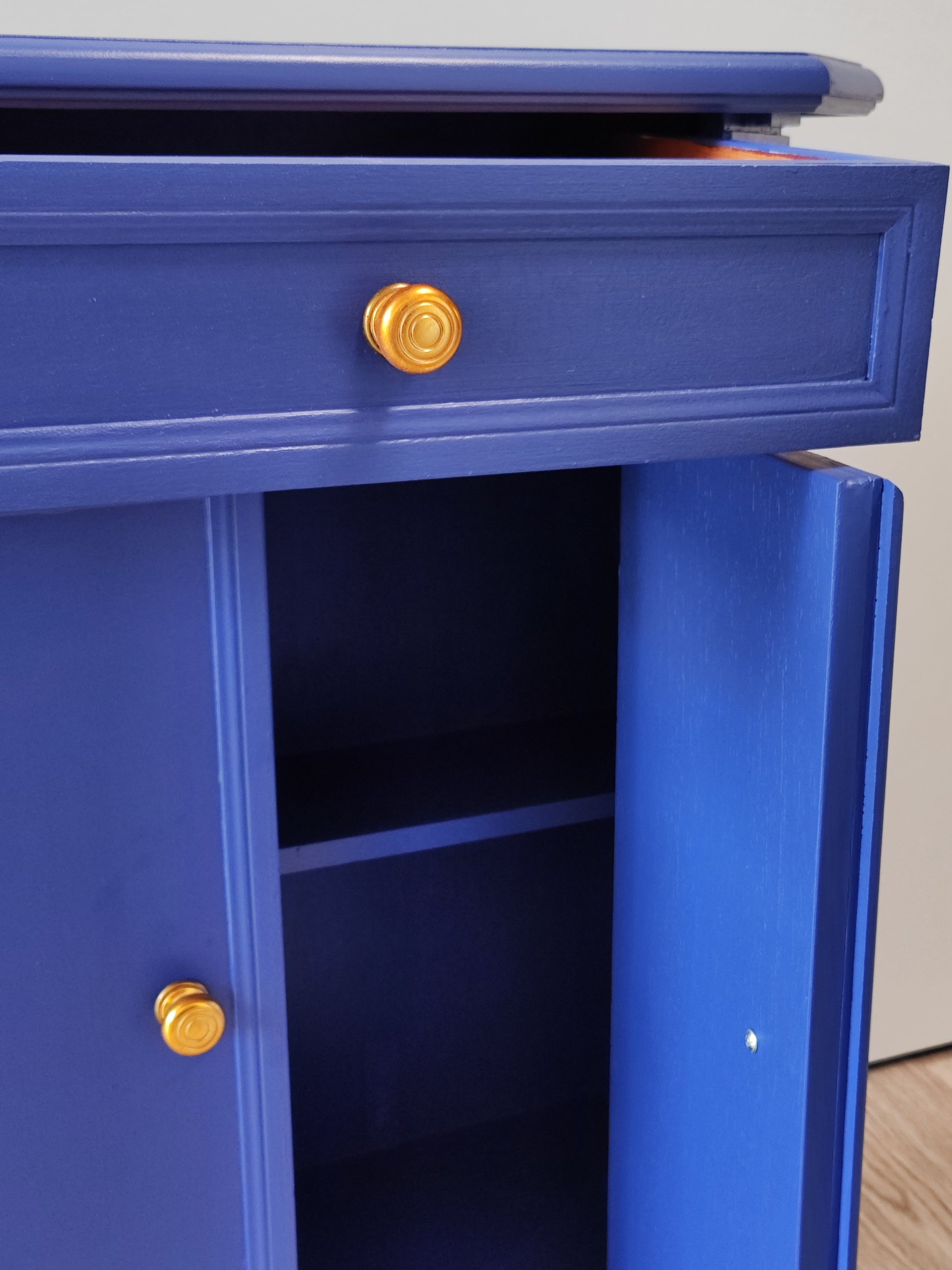 Ein Beistelltisch mit lebendiger, moderner Farbgebung hat nach sorgfältiger Restaurierung ein zweites Leben gefunden. Er wird nicht nur Spiele und Abenteuer überstehen, sondern auch Ihrem Interieur eine unvergleichliche Faszination verleihen. Der Tisch, hergestellt aus wertvollen Holzarten, erstrahlt in neuen Farben dank der lebendigen, modernen Farbgebung. Diese einzigartige Kombination schafft eine Atmosphäre von Wärme und Gemütlichkeit im Kinderzimmer. Der Vintage-Charme und die zeitgemäße Umsetzung verschmelzen in diesem Tisch. Er wurde sorgfältig restauriert und mit kratzfester Farbe verziert, und fügt sich mit makellosem Geschmack in jede Einrichtung ein. Die widerstandsfähige, seidig-matte Wasserbasis-Beschichtung schützt nicht nur den Tisch, sondern bewahrt auch sein ursprüngliches Aussehen.